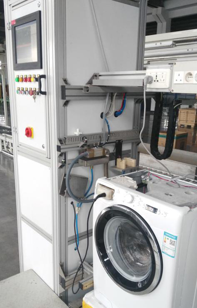 半自動站位式功能檢測 我公司自主研發(fā)的半自動站位式功能檢測,型式為站位式運行,洗衣機運行至檢測工位,人工插拔進水閥、排水管、供電插座,檢測臺位自動運行對滾筒洗衣機各項功能進行跟蹤檢測。產(chǎn)品范圍 滾筒洗衣機設(shè)備 控制系統(tǒng)、檢測機構(gòu)、供水機構(gòu)和氣動系統(tǒng)等組成。